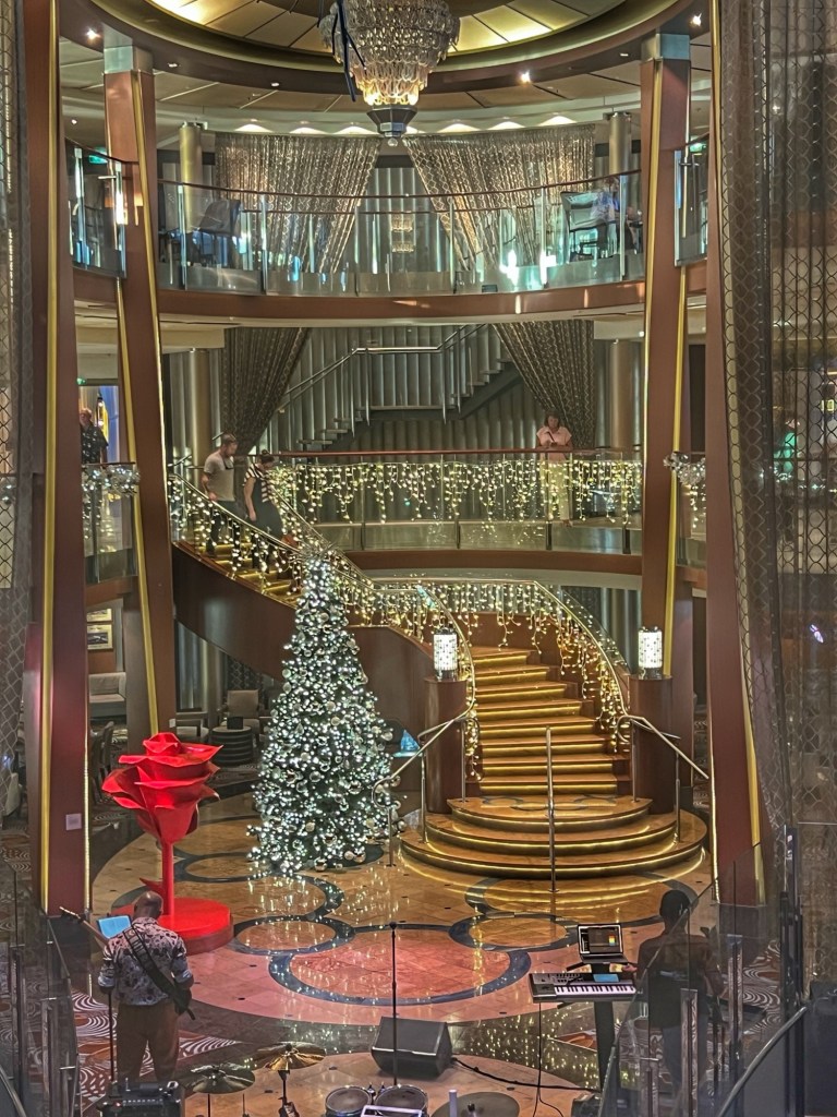 We enjoyed the afternoon by the pool and after which we met some friends for coffee. No pastries for me. Some pretty decorations around the ship.