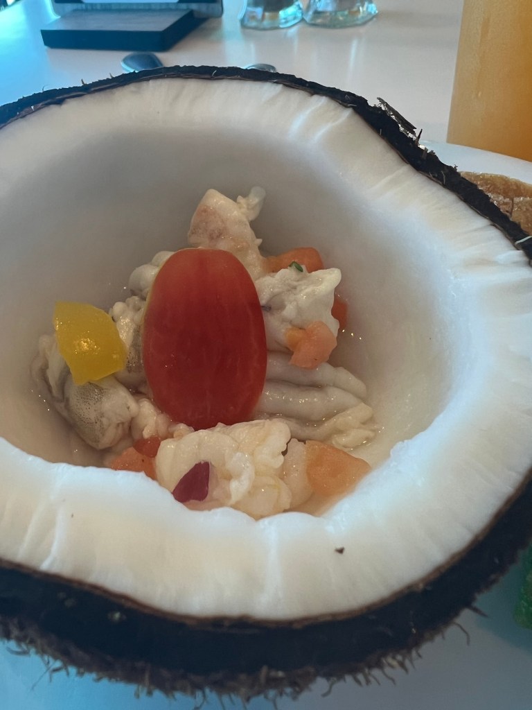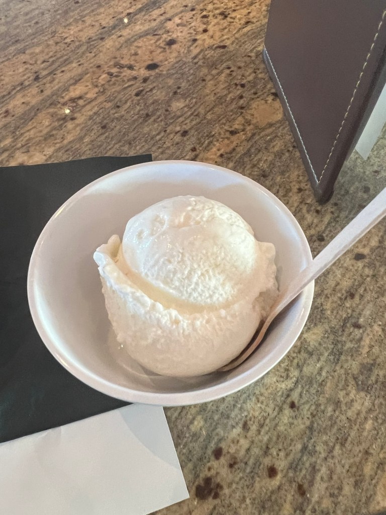 I enjoyed a cup of coconut gelato which I got for free as a Select member on Celebrity Cruises.