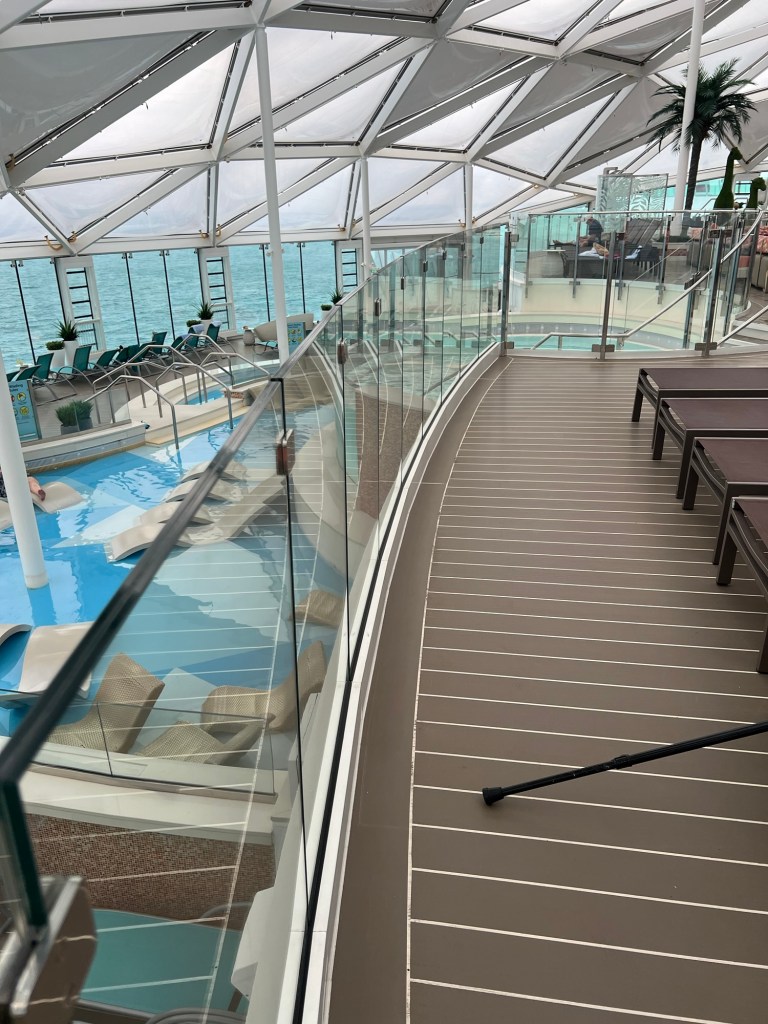 We have a lovely infinity balcony again. Although I like the outside balconies this gives our cabin so much more room.