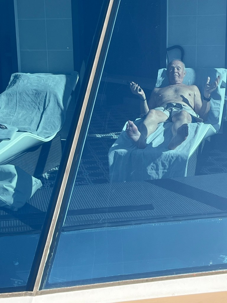 We’ve had two beautiful sea days watching the ocean from our balcony and spending time in the thermal suites at the spa.