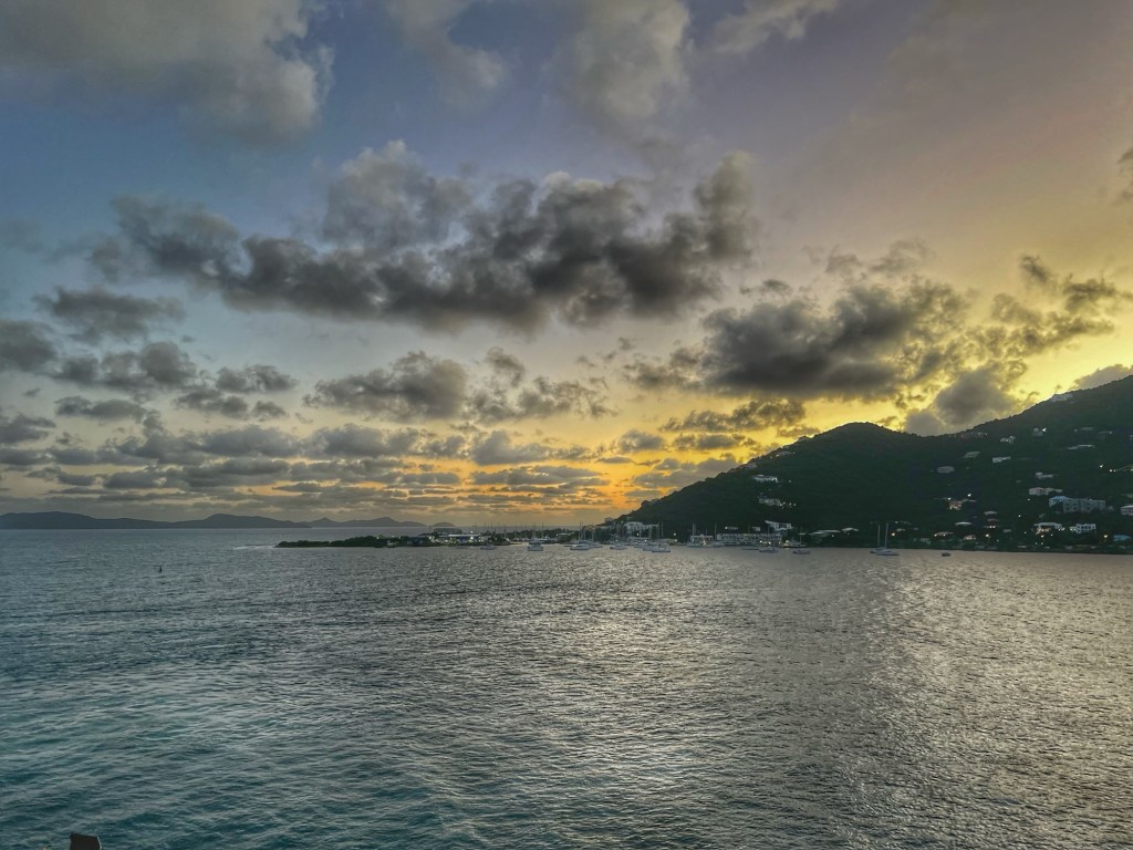 It was beautiful on Tortola. We watched the other ship leave and then we followed suit. From our balcony, we watched the setting sun.
