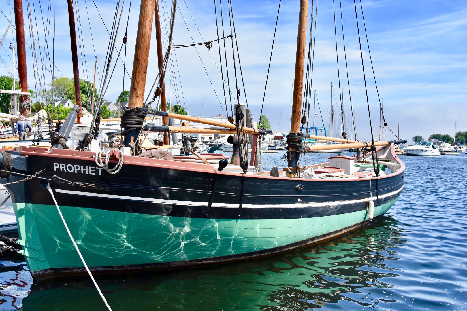 Down by the harbor their were many beautiful sailing ships.