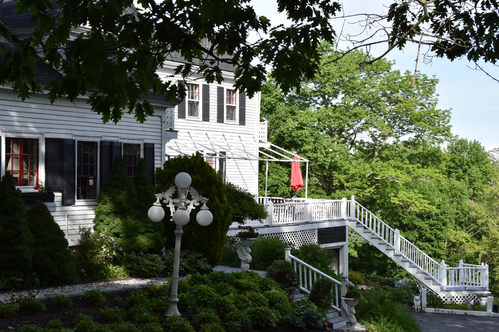 Today was a typical Maine day. Gray, cold and damp. We made plans to have lunch with Bruce’s brother Michael in Brewer. He had lovely peonies growing in front of his house.