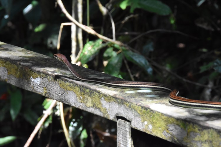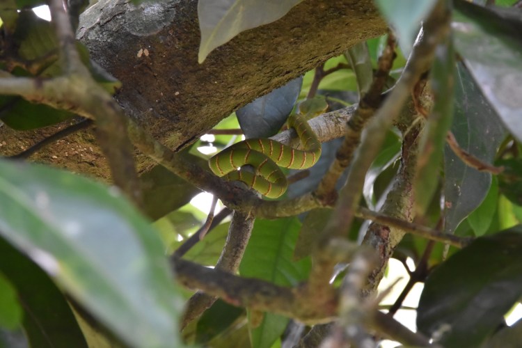 While walking on the boardwalk our guide pointed out a green viper in the tree.