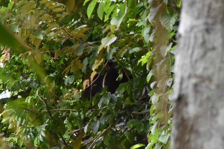 As we were walking out, I said to Bruce “what keeps the orangutans from coming over here?” With that, a commotion in a tree and loud noise made us go, I guess nothing. The ranger was very upset and he didn’t want us there. He tried to get us out but those of us with cameras wanted to take some pictures. Of course they came out with nothing but a dark blob in the shot. Oh well! It was exciting at that moment.