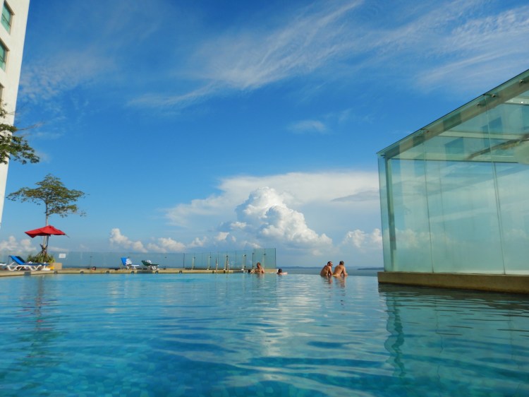 We flew from Kuala Lumpur to Sandakan arriving mid afternoon on Sunday. We were staying at a nice hotel, Four Points Sheraton, which had a lovely infinity pool.