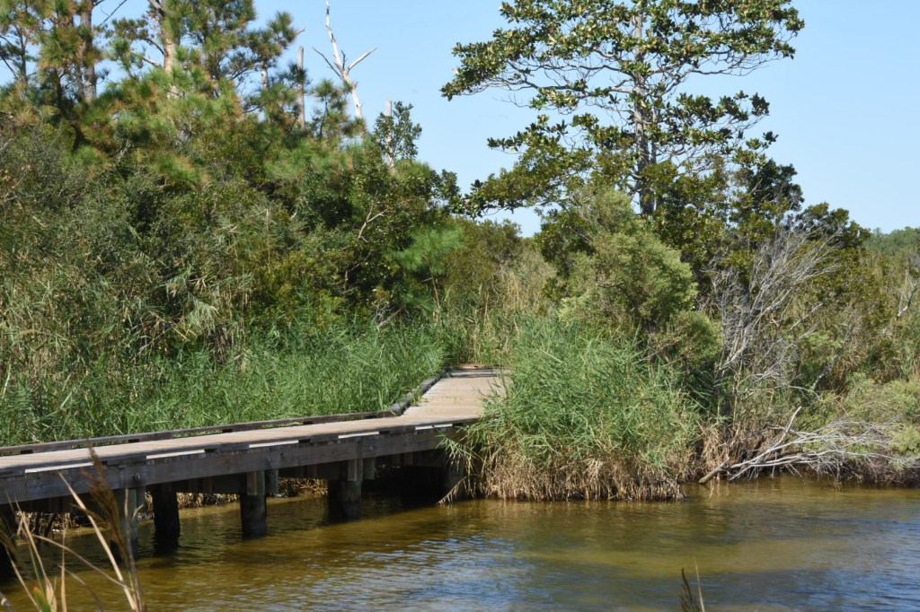 The little village of Manteo was typical of any beach town with shops and restaurants. We walked across the bridge to the island but the museum with the Elizabethan II was closed on Mondays. So we walked along the boardwalk next to the inlet.
