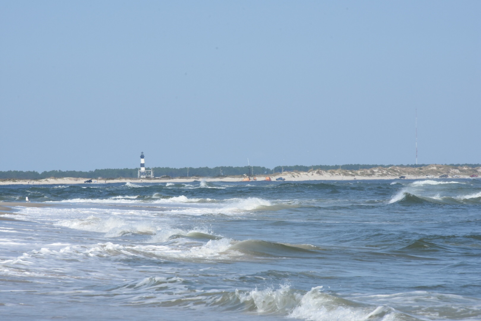 Our journey south on the Cape Hatteras National Seashore began with the crossing of the Oregon Inlet. This Inlet separates the Atlantic from Pamlico Sound and it’s home to a thriving fishing industry. There are several long bridges throughout the Outer Banks and we loved traveling over them. We stopped just over the bridge for a photo op and to check out the trail to the beach.