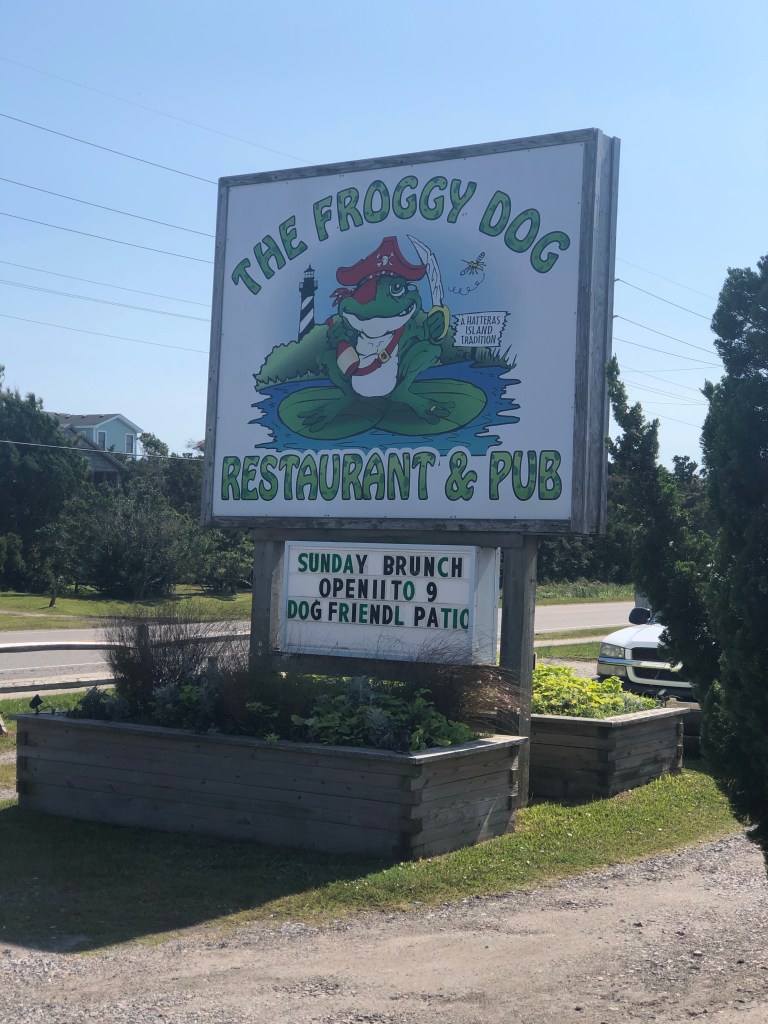 We stopped for a late lunch or early supper at the Froggy Dog where the catch of the day was mahi. I had the platter and Bruce had the sandwich. It was delicious.