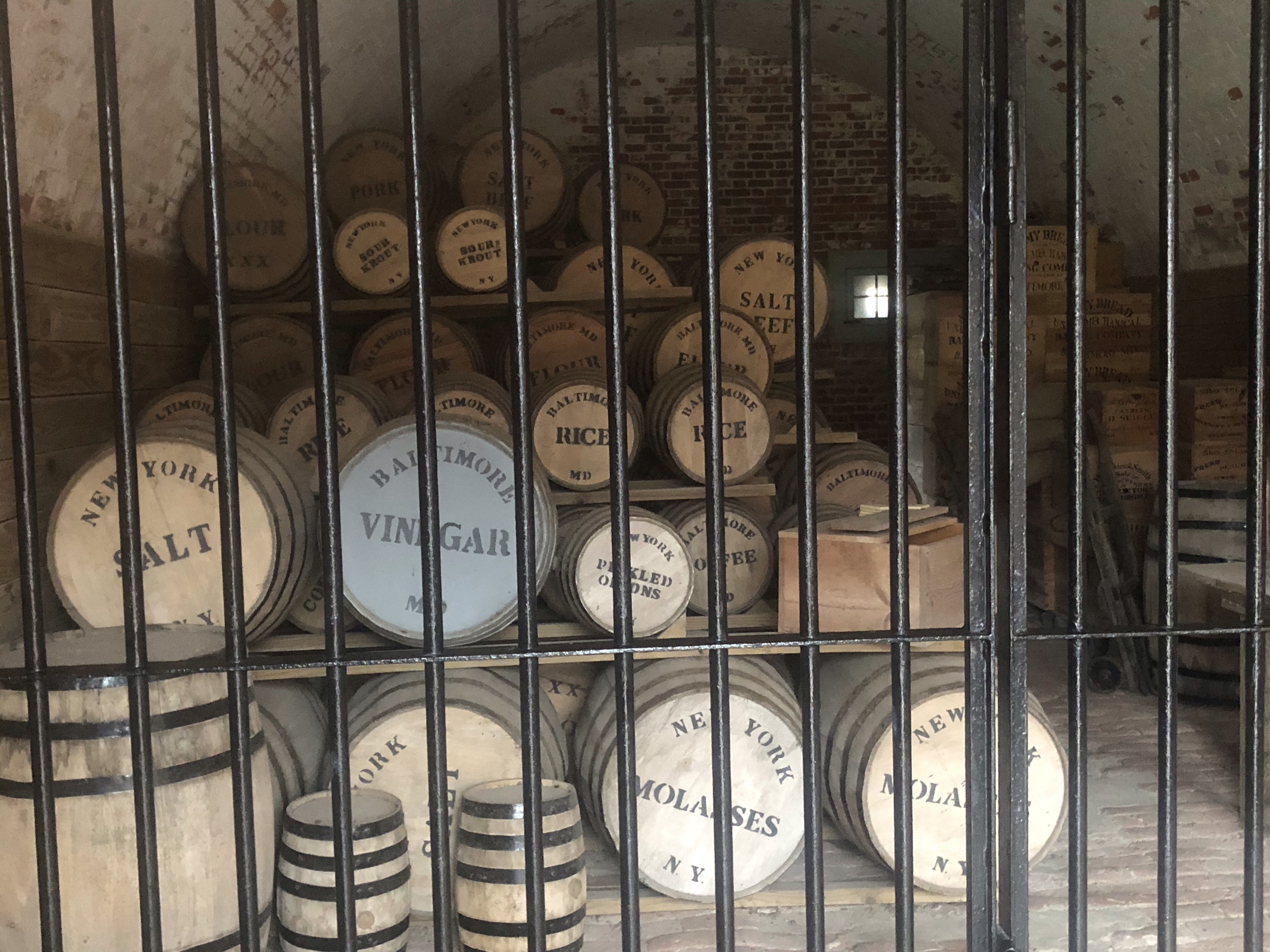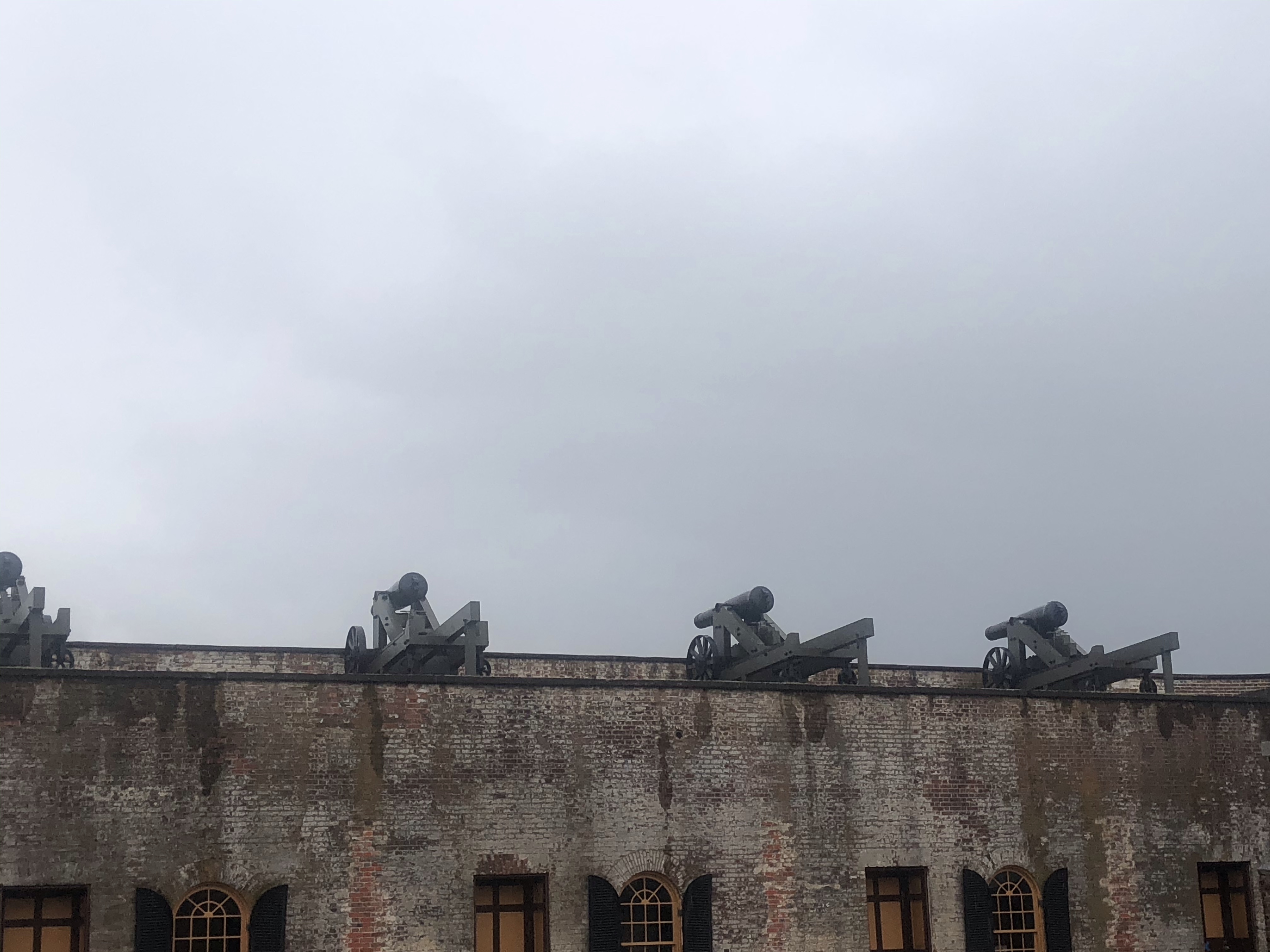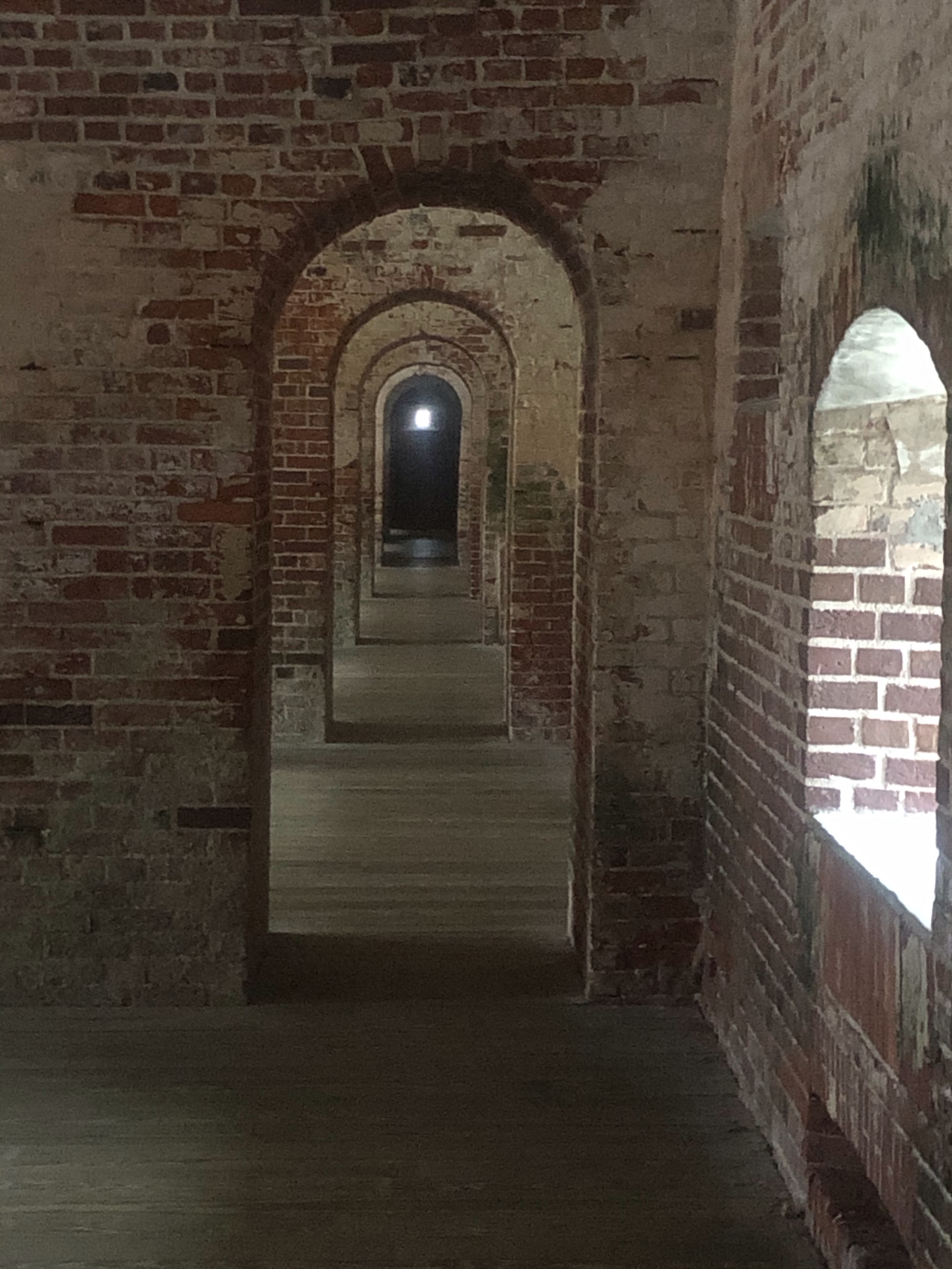 There were no tours today, maybe any day because of Covid. So we darted in and out of covered spaces, escaping from the pouring rain, within the fort learning about its history during the Civil War. After the war it served as a federal prison until 1876 and was eventually closed in 1903. It became North Carolina’s second state park in 1924.