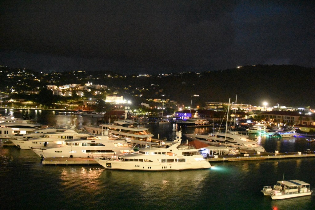 We stayed in St. Thomas until 9pm. Some pretty awesome boats in the harbor.