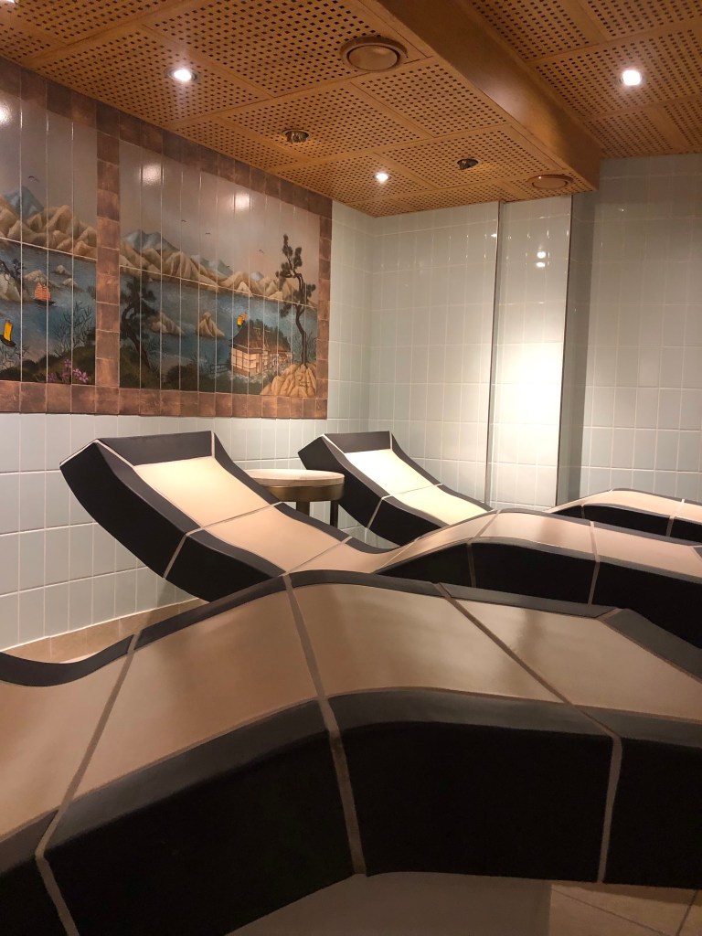 One of the things I like to do on a cruise is sign up for a spa treatment and if they have a thermal suite, sign up for that. On the first day, I had a wonderful massage and Bruce and I used the thermal suite every day.