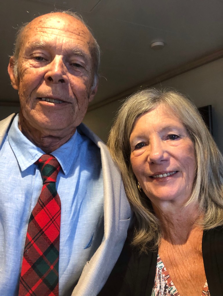 Day three we had coffee with friends and also ate dinner with a group of people. It was formal night so we were dressed up. Bruce in his sport jacket and me in my sparkly top.