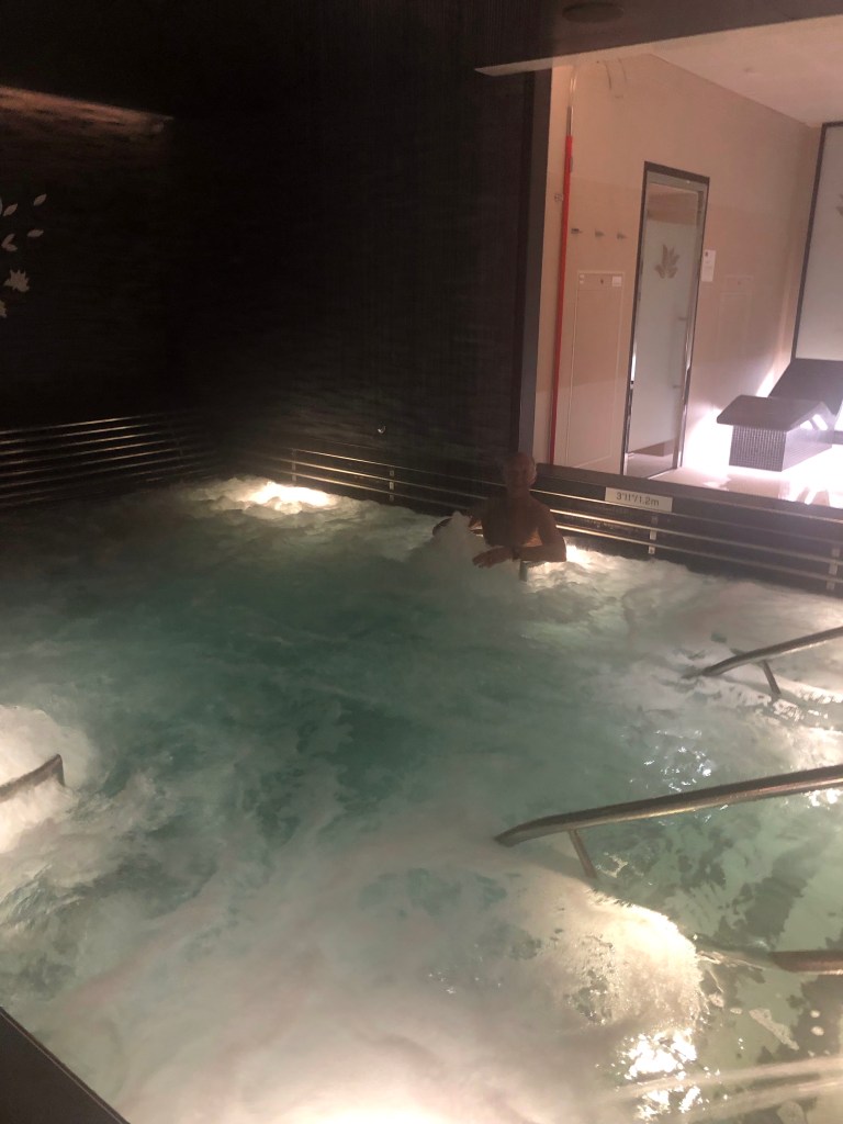 Day two we hit the gym – I did a stretch class and Bruce worked out with weights. We enjoyed the spa where we bought a cruise pass to their thermal suite. Love the heated beds and powerful jacuzzi.
