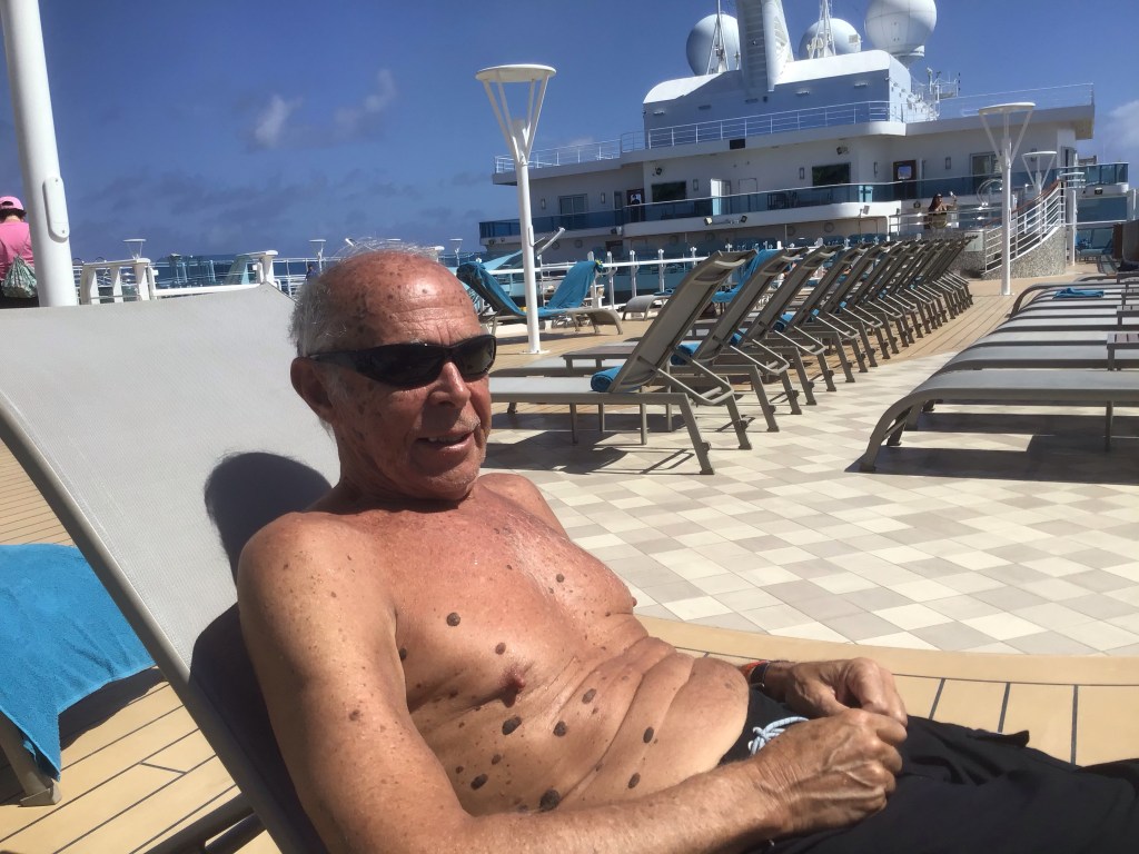 Day six is another beautiful day. Lounging by the pool and enjoying the hot tubs. There are plenty of chaises because the ship is only 60% full.