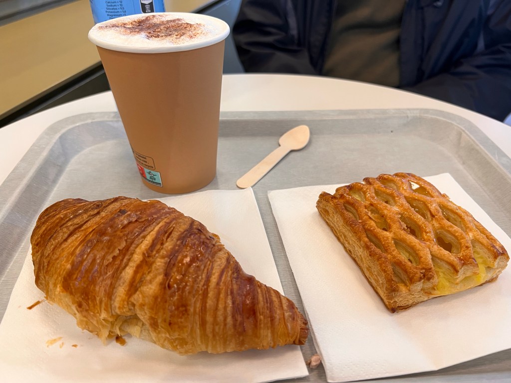 We stopped at the cafe for a very much needed cup of coffee and croissant. There wasn’t a line when we went, but as we sat there drinking our beverages, the lines again grew longer and longer.