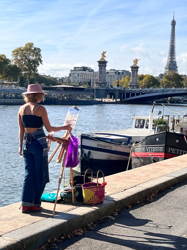 After walking around the square we headed to the Batobus to go back to our hotel. This young woman was painting on the bank of the Seine.