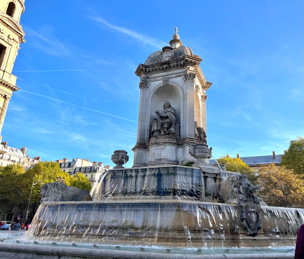 Then we went to the Church of Saint Sulpice. Outside was a huge fountain and the church did not have a steeple with a cross.