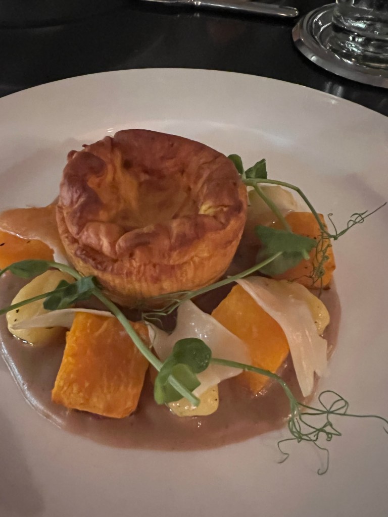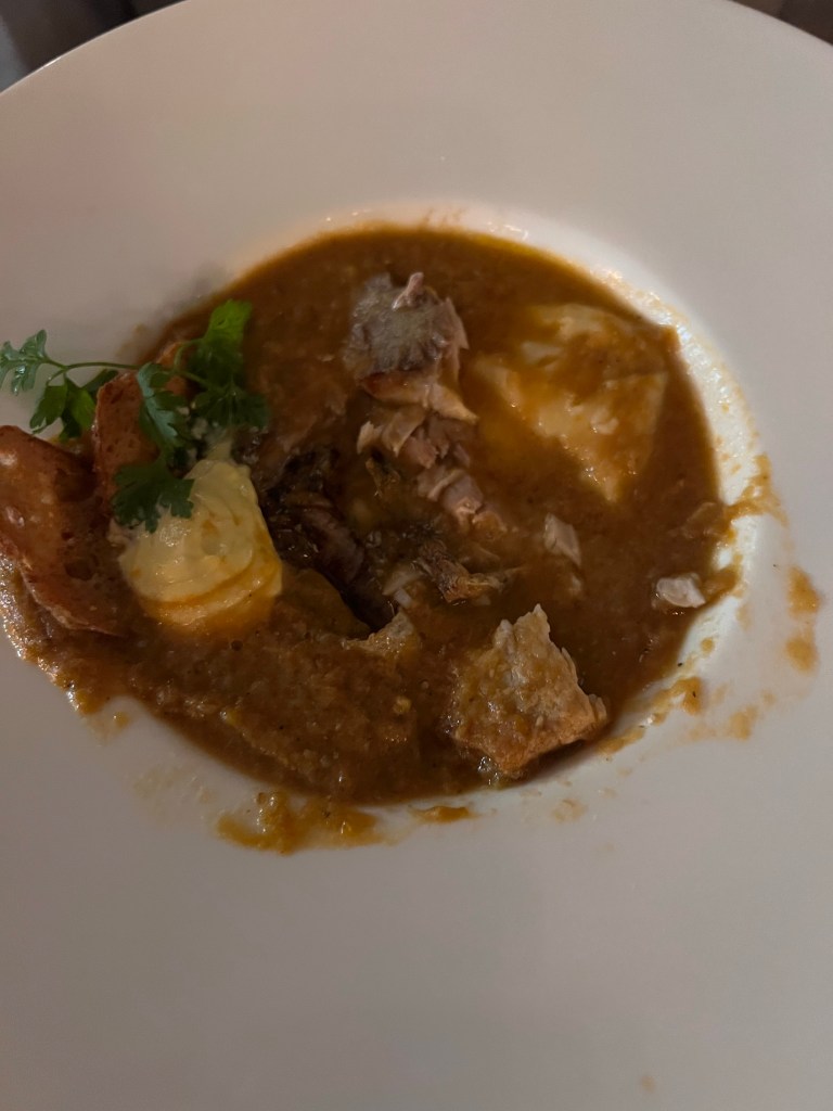 We weren’t very hungry after the scones so I ordered a pumpkin soufflé and Bruce had a fish soup. Luckily we weren’t very hungry because they weren’t substantial.