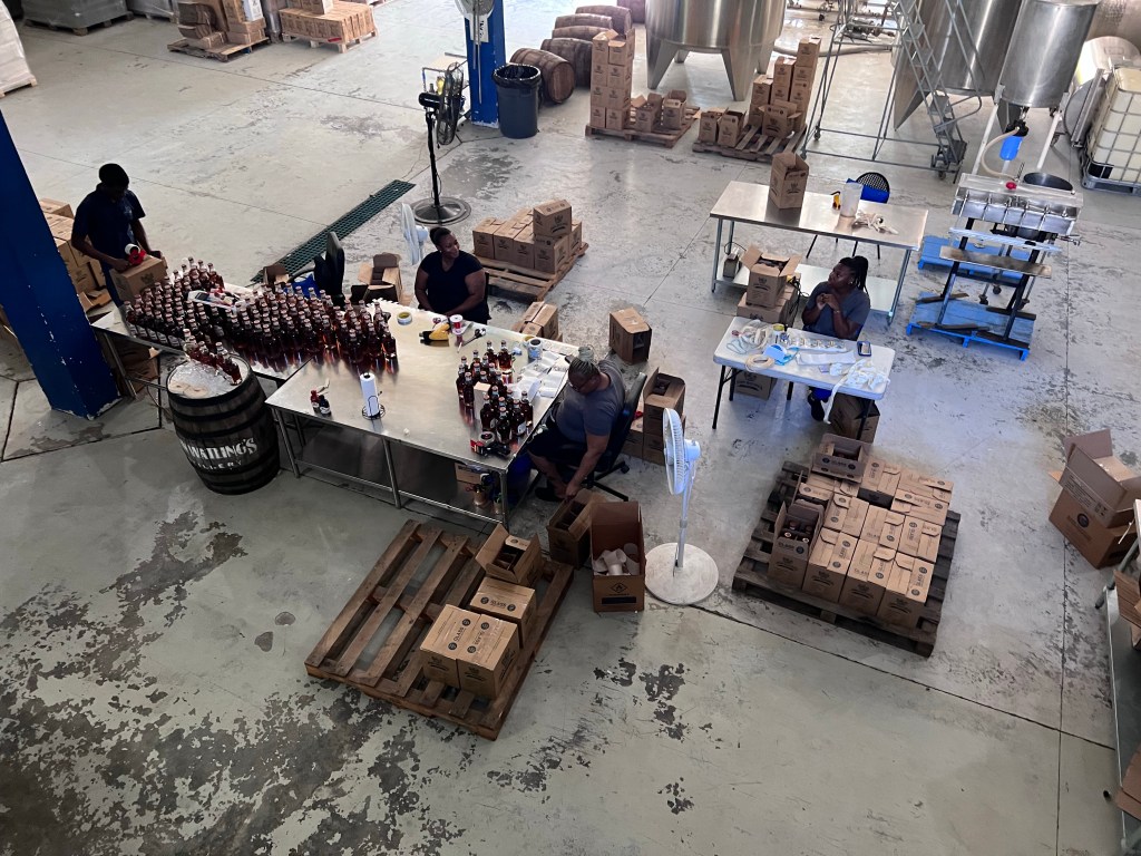 The labels are still put on the bottles by hand.