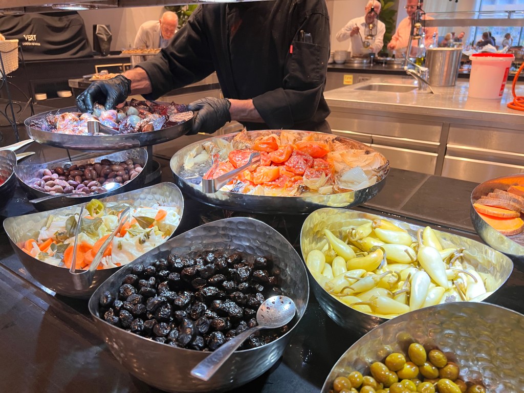 Dinner was buffet style and it was sumptuous! Couscous, Mediterranean salads, hummus, fried fish, fresh made bread.
