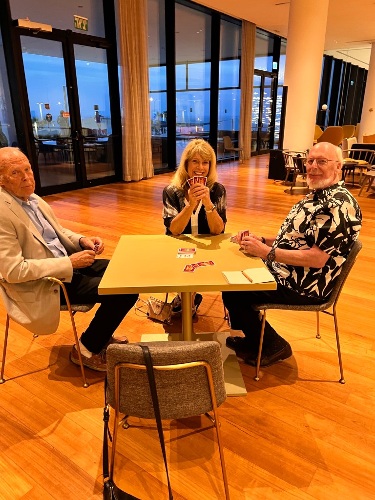 After dinner we played cards. After 3 hands I was doing awful with no chance of return so we called it quits! It’s going to be a busy week in Israel!