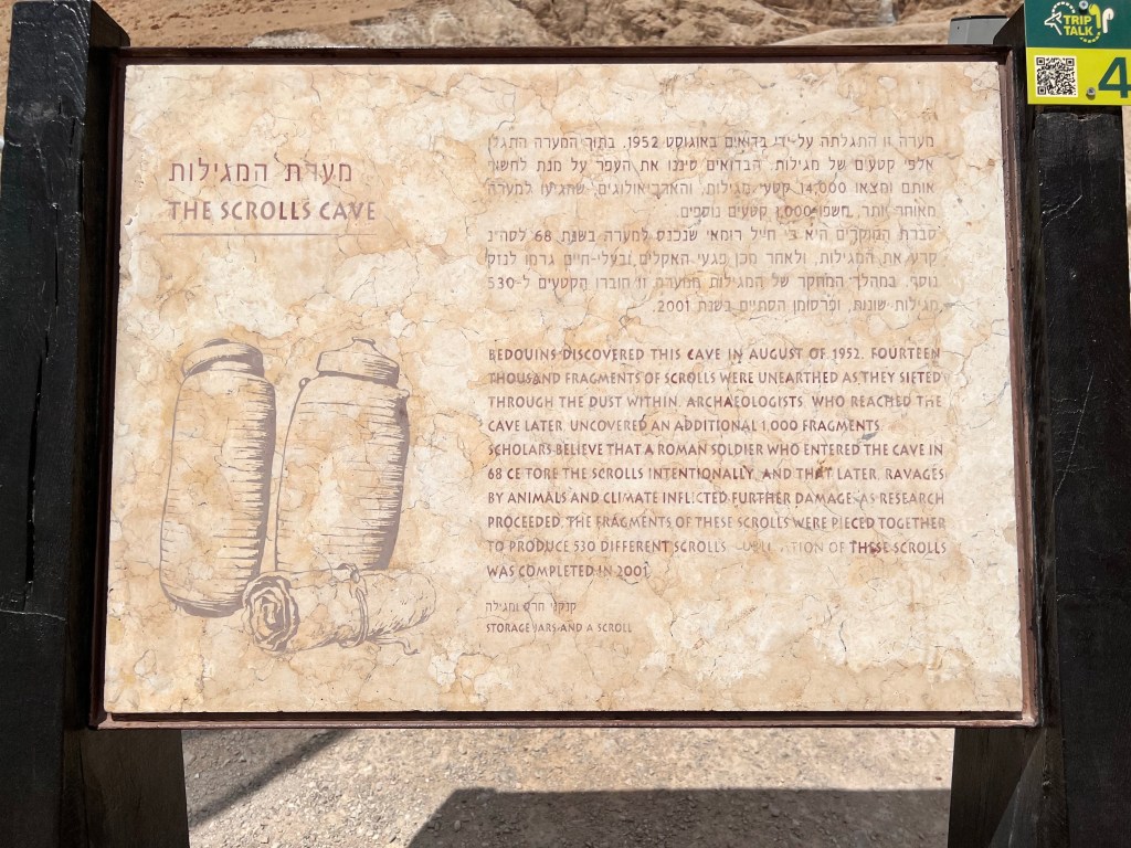 After our visit to Masada, we headed to the Qumran Caves where the Dead Sea Scrolls were found.