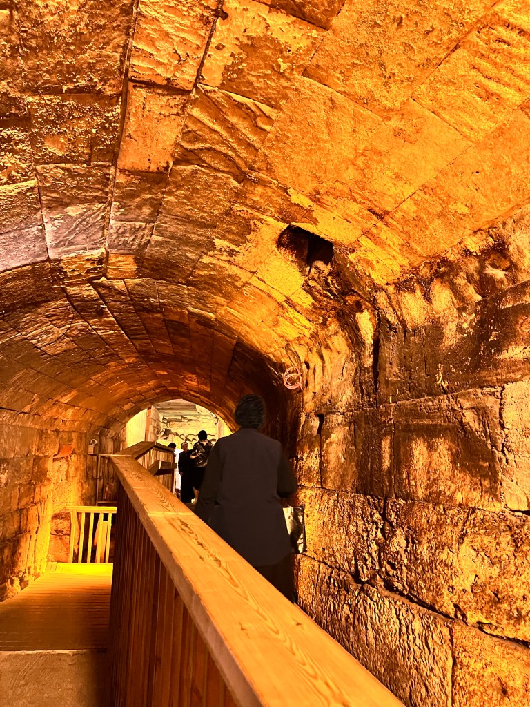 We began our tour today in the Rabbinical Tunnels which led us through the construction of the Temple Mount and their water system and the inner side of the Western Wall.