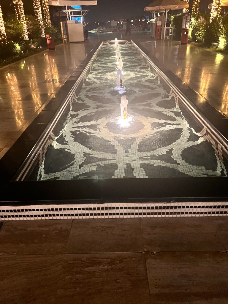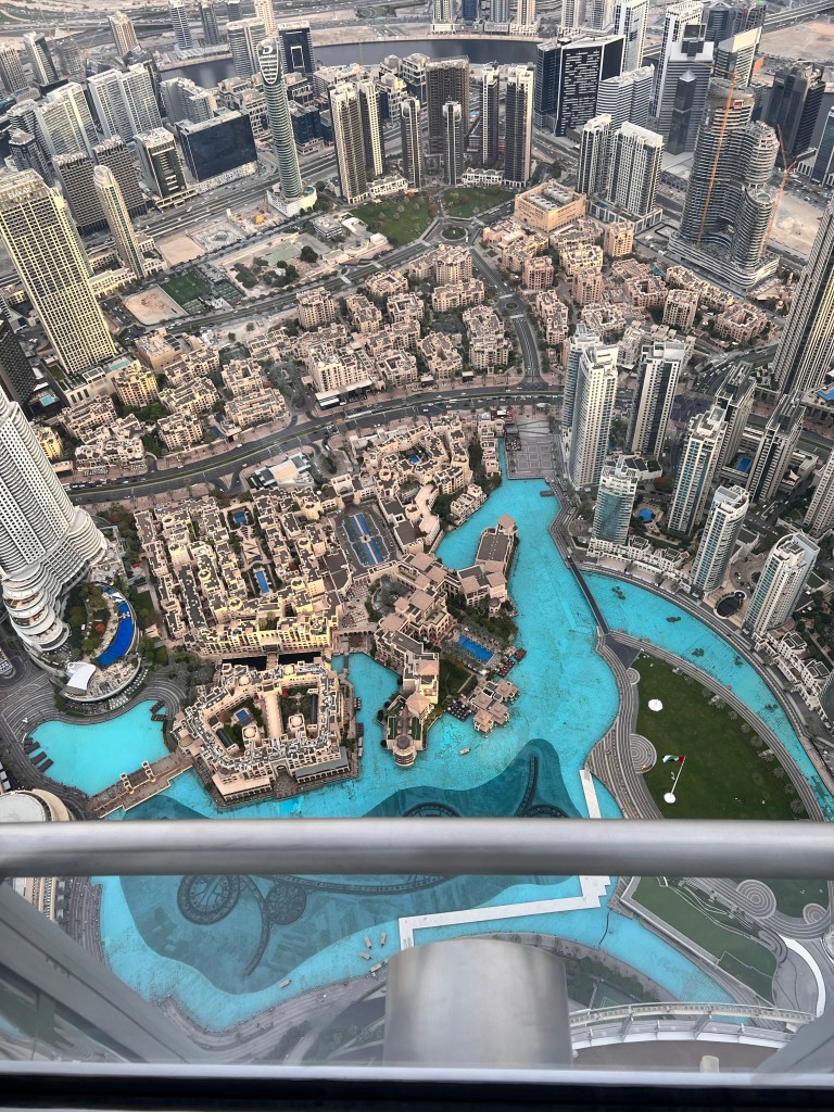 At last it was time to go to the tallest building, Burj Al Arab. We had VIP tickets so we didn’t have to wait in line. They also served cappuccino and dates and pastry.