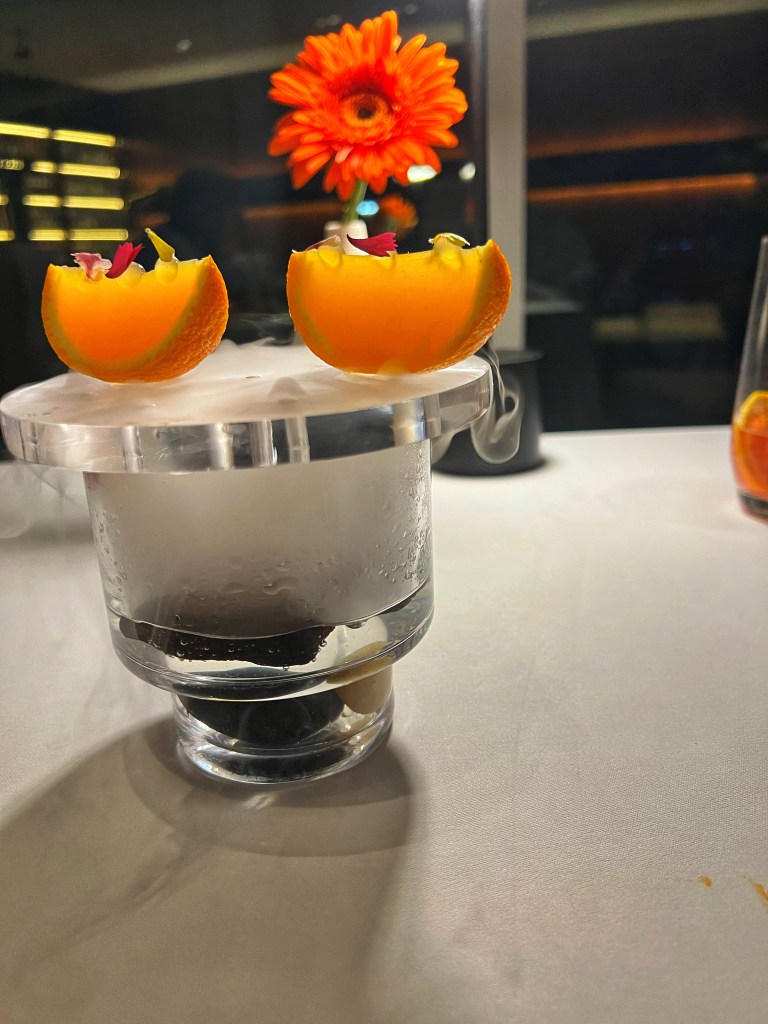 It was an amazing evening. Afterwards we had dinner at the Italian restaurant at the Waldorf, Social. We ordered hibiscus tea. I had cannelloni and Bruce had eggplant. They also gave us many other things to taste.