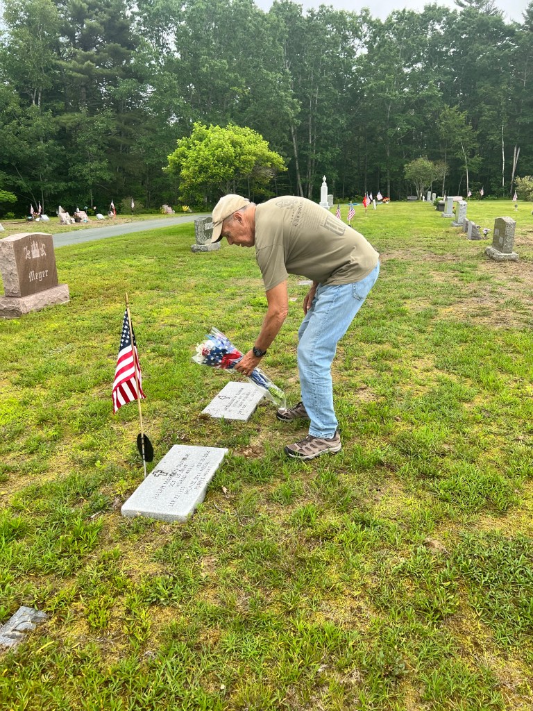 We visited Grammy and Grampy Maines Cemetery in Ellsworth. We had some difficulty finding it but with the cemetery name and google maps it brought us right to their plot. Bruce placed some flowers on the grave.