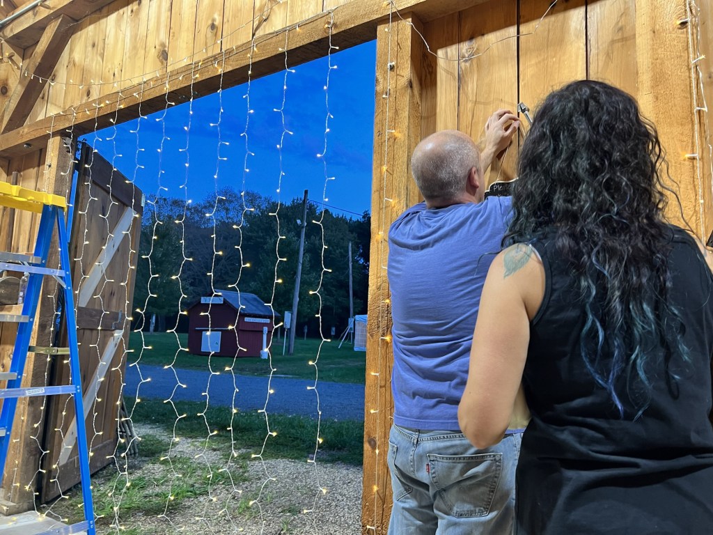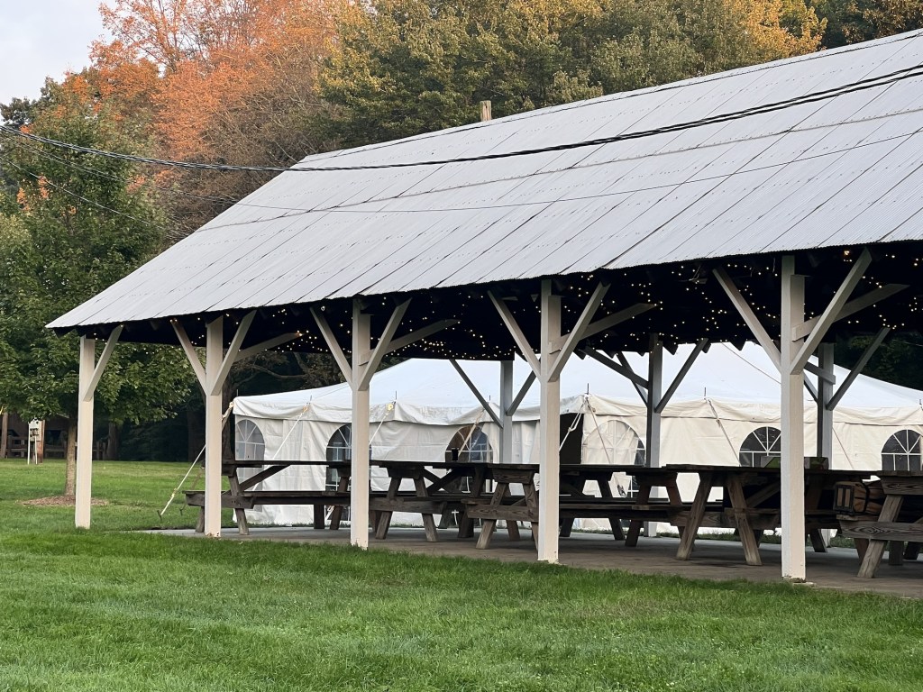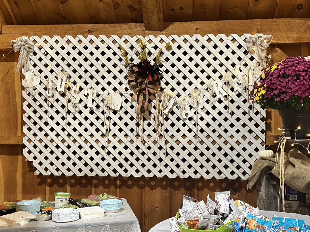 The wedding plans didn’t start out so great though. After a Thursday of setting up the Haddam Neck Fairgrounds and adding twinkling lights, flower arrangements and pumpkins to the barn and tent, Friday was nearly a wash out. It didn’t just rain. It was torrential down pours. The drains filled to overflowing and the tent was flooded.