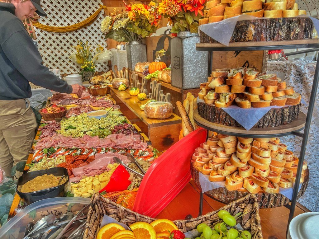 The food was delicious – a giant charcuterie board filled with cheese, fruits and veggies.