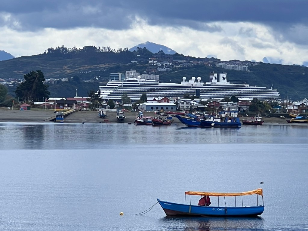 It’s our last tender port so we decided to sleep in and miss the crowds. We arrived in Puerto Montt, Chili at 8 am. The port was not very exciting to look at from our balcony because cloud covered the volcanoes in the distance.