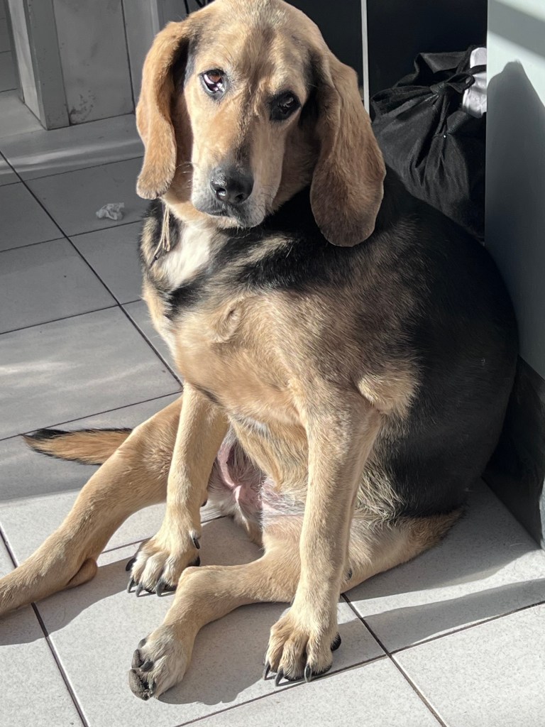 We had a 1-1/2 hour ride to Santiago and our first stop was a gas station where I found the cutest dog! She posed for me. How precious!