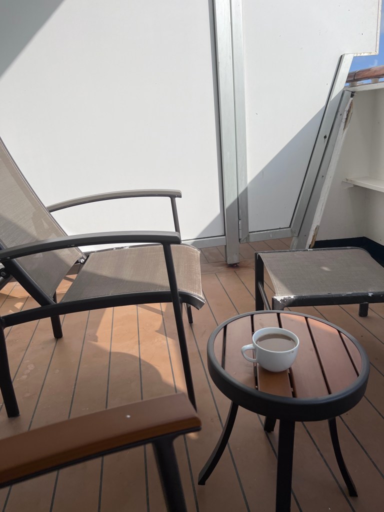 We enjoyed coffee on our balcony. It’s a big balcony but it could use some maintenance.