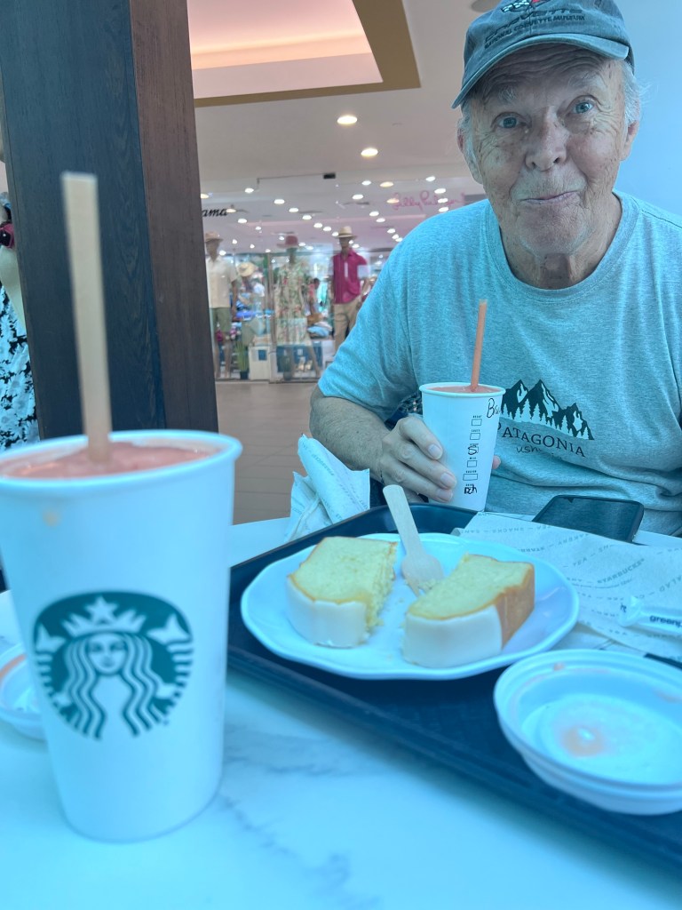 We looked for a cafe or bakery and all we could find was Starbucks. We had a strawberry smoothie and shared a pound cake.
