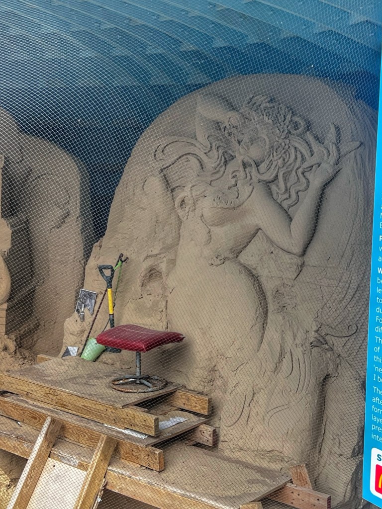 Several sand sculptures were in progress and one was of soldiers since they were gearing up to celebrate D-Day. Some of the boats were launched from Weymouth.