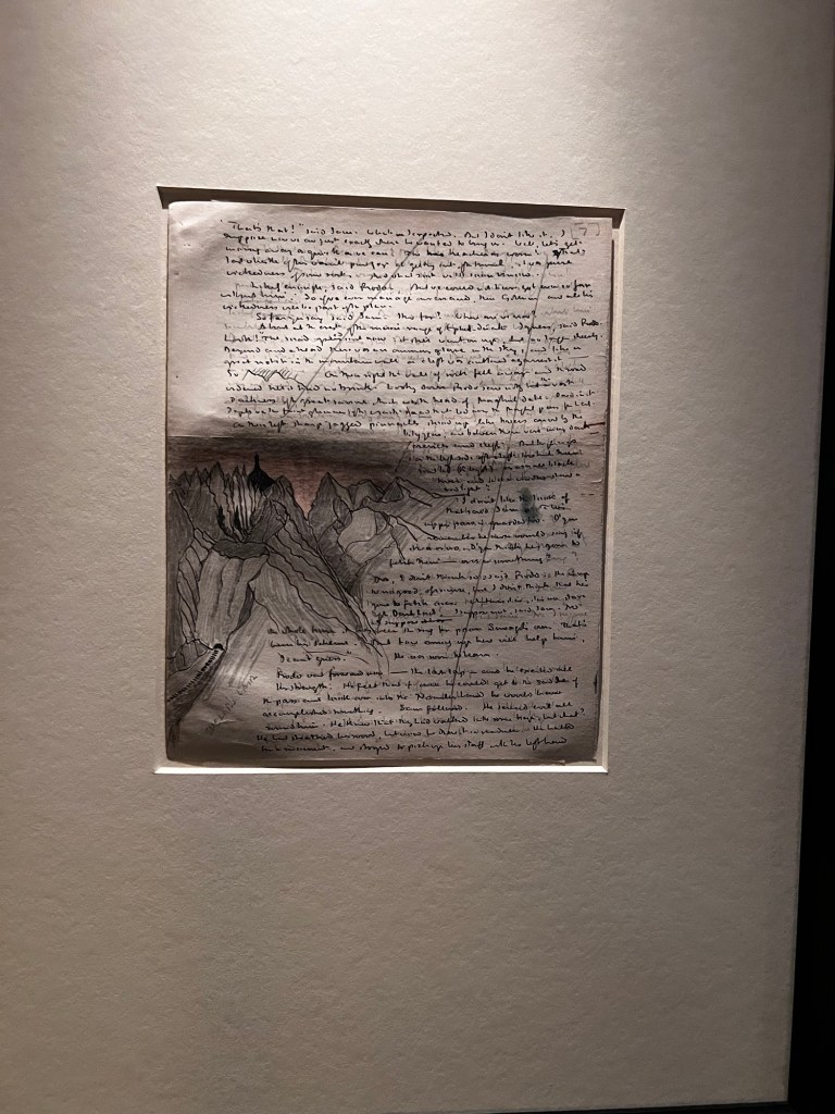 Below was a notebook of JRR Tolkiens showing illustrations as well as copy and editing notes.