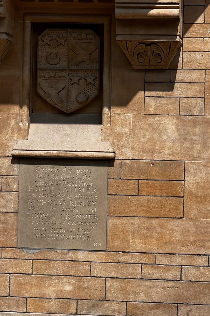 We met up with our tour guide, Tom, and another couple from Hawaii to commence our Inspector Morse, Lewis, and Endeavor Tour. Our first point of interest was a cobbled spot in the road where three bishops were burnt at the stake in 1555 and 1556. I think the main issue was that they were Protestant when the country was Catholic.