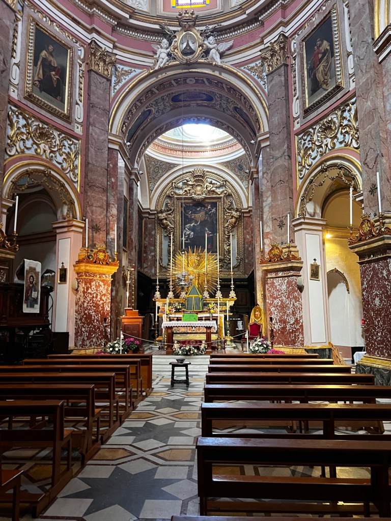 This is the outside of St. Paul’s Cathedral, originally founded in the 12th century but was damaged during an earthquake in 1693 and rebuilt after that by a Maltese architect named Gafa.