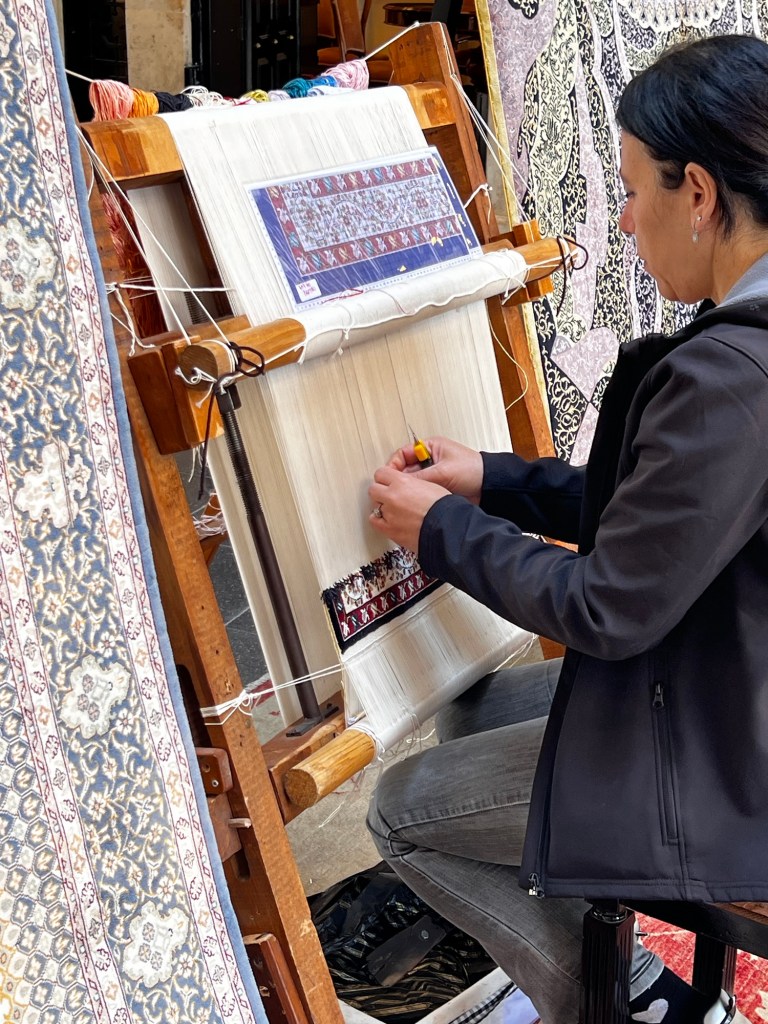 After Ephesus we went to a rug shop. Here a woman is hand-making a silk rug.