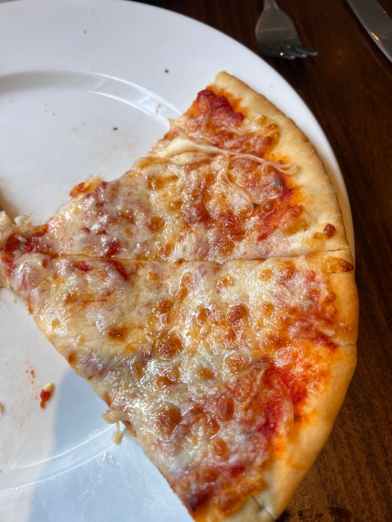 We had pizza for dinner and Bruce had the real sticky toffee pudding.