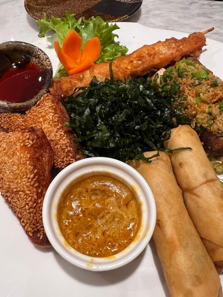 It was an amazing meal but it could have fed 4 people. Our starter included spring rolls, chicken satay, toast, and ribs.