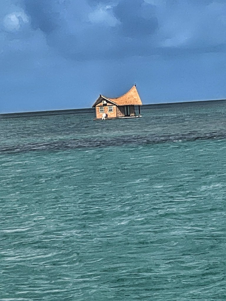 This little house in the water is a rental property. Apparently you can rent it nightly and the owner will boat you out there. You must be at the house before dark.