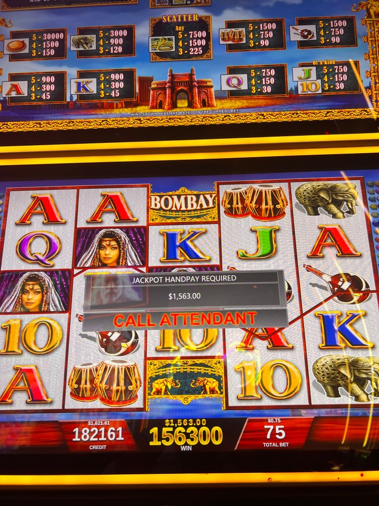 We played in the casino tonight and I had my first hand pay ever. $1563 on a 75 cent bet. It wasn’t a major or anything.