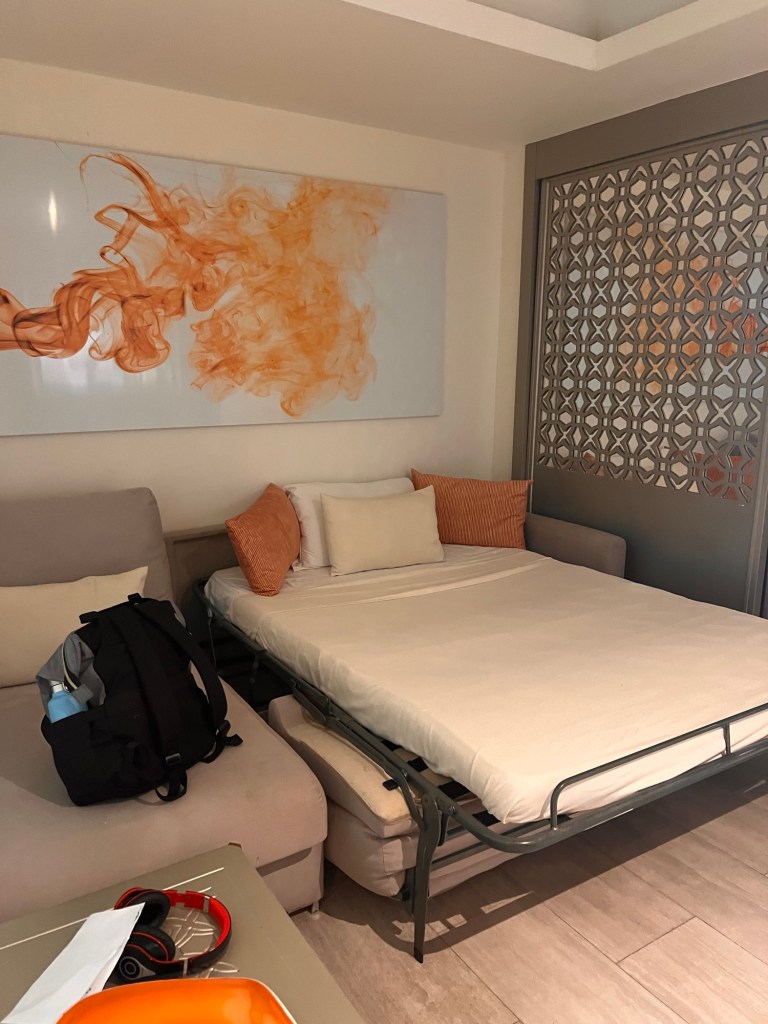 We relaxed on comfy loungers under a thatched roof umbrella. The ocean was lovely. Many vendors came by to sell their wares but not overly aggressive. One guy had an entire garment rack.