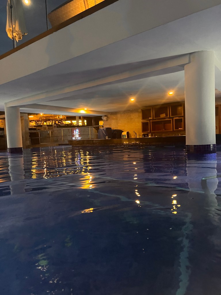 Kadyn and I went for a swim in the infinity pool while Lauren went to the gym. The swim up bar was closed for the night.