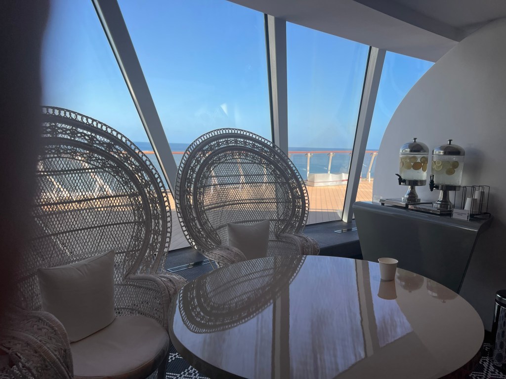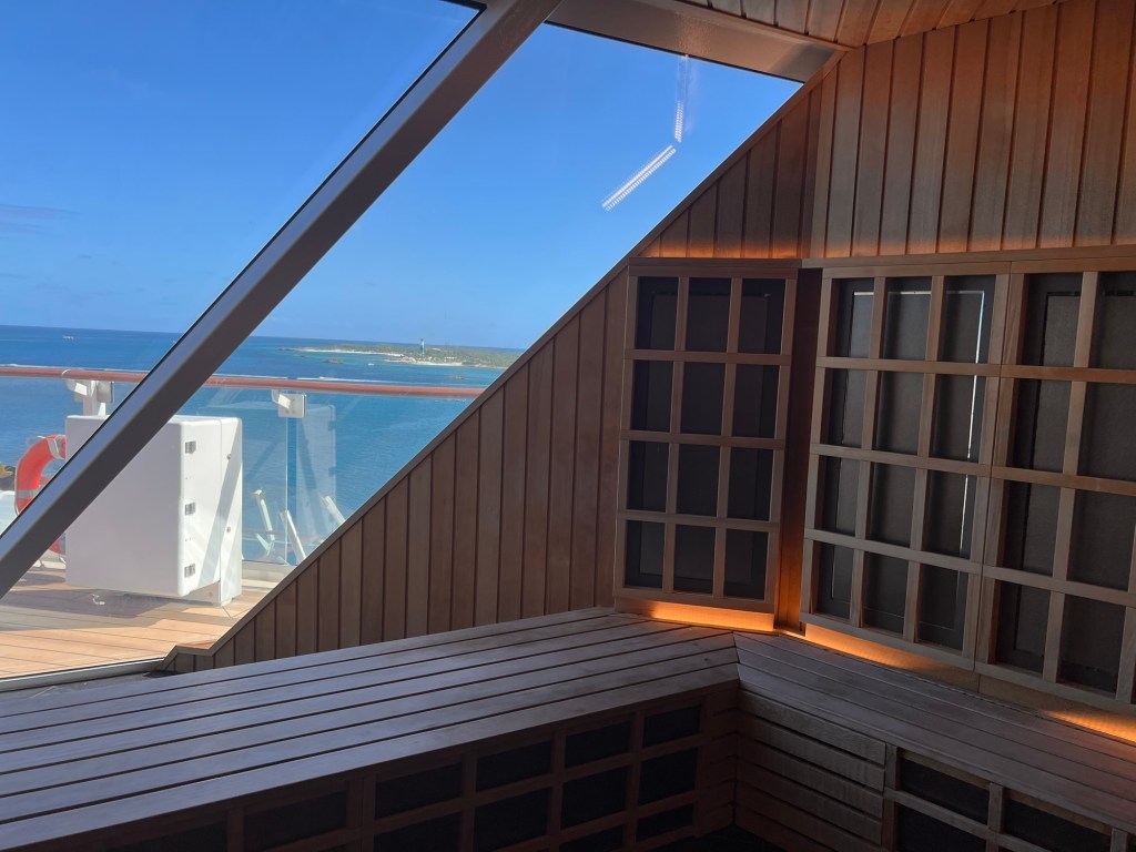 The Spa was empty because we were in Coco Cay, Royal Caribbean’s private island. The heated beds are wonderful. Unlike the Persian room on other Celrbrity ships, there appears to be more heated loungers on Apex.