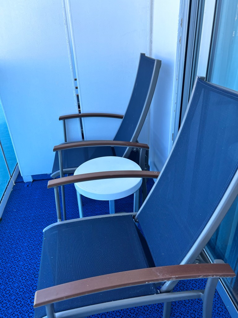 Our cabin is lovely with a nice balcony.